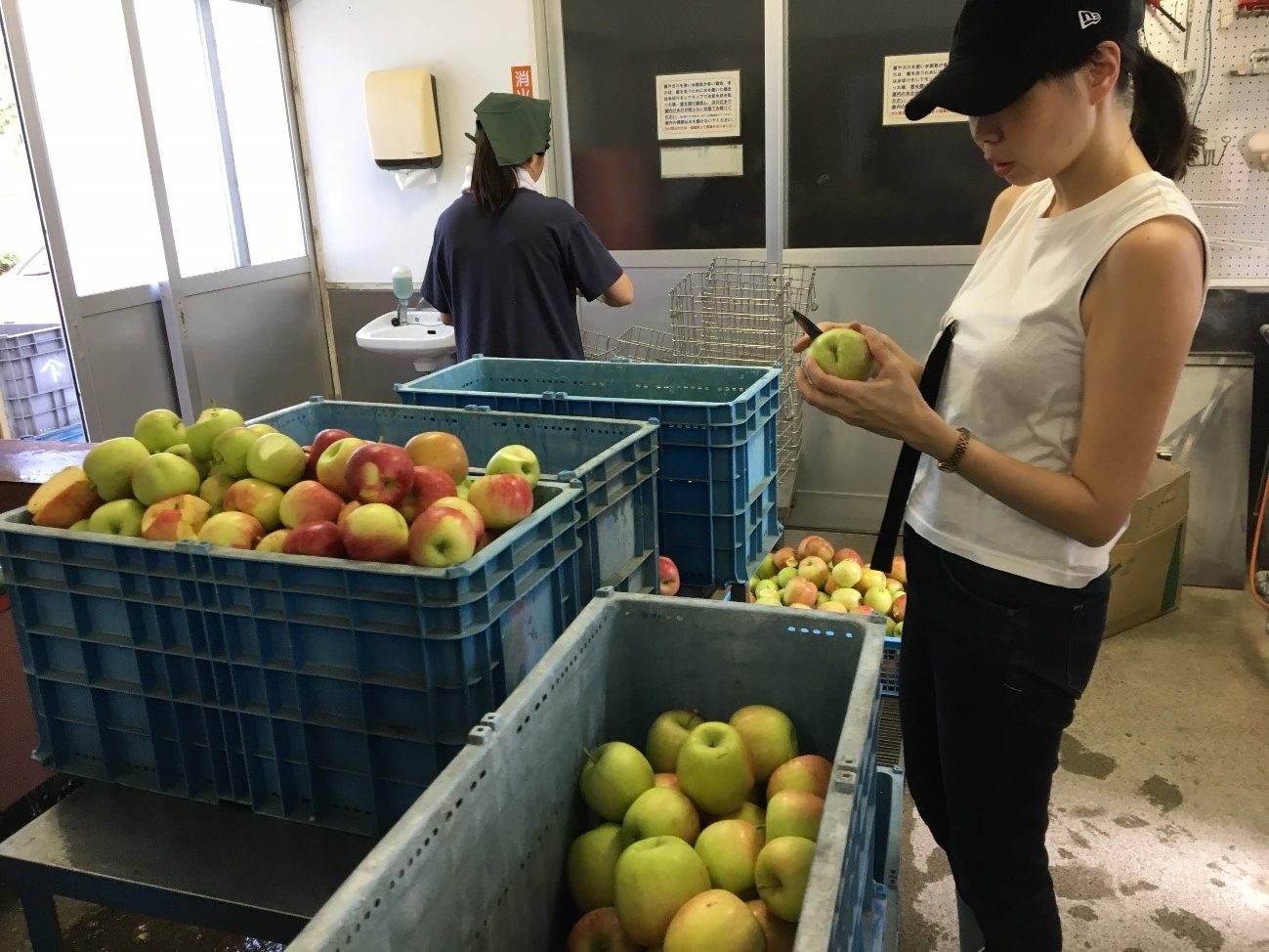 藤原さんご夫妻に連れていっていただいた先は、私たちがりんご搾汁体験をする町営の加工場でした。ここでは、地域の町民の方たちが自宅用としてみそ、麹、ジャム、ジュースなどの加工をされています。
